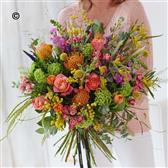 If you’re looking for a cut flower that really packs a punch, you can’t go wrong with the protea. Big and bold, with a fascinating structure, these South African blooms typically come in shades of pink, red, white, cream, and yellow. In our Spring Hand-Tied Luxury arrangement, we’ve paired peach protea with zingy greens and yellows, cerise, softer pinks, lighter peach, and apricot to create a jaw-dropping display of complementary colours and shapes. While these arrangements are all one-of-a-kind, so we can’t guarantee that yours will look identical to the one pictured, we can promise that it will be just as spectacular.