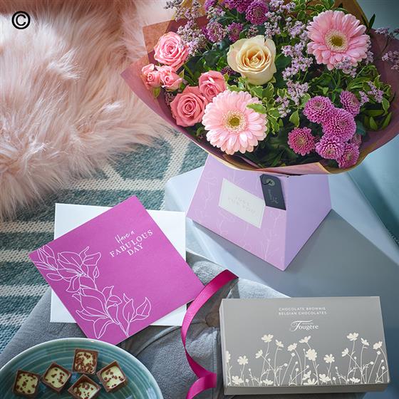 Make it an extra special Mother's Day this year with a gorgeous gift set. This one comes with a handcrafted bouquet in a beautiful gift box, scrummy chocolates and a lovely card.