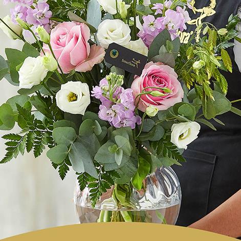 Hand-tied flowers perfectly pre-arranged and delivered in a stylish vase. Choose neutral, bright or pastel hues or let our florist surprise you. Arrives ready to display for minimal fuss and maximum impact. Includes a beautiful vase they can use time and time again.